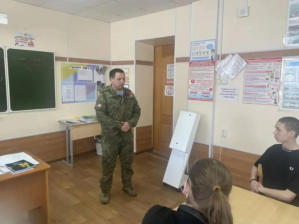 В ходе урока Максим рассказал о своём пути: он окончил наш техникум в 2015 году, после чего пошёл служить в армию, а в 2016 году подписал контракт. С 2022 года он является участником специальной военной операции (СВО) и за свои выдающиеся достижения был награждён медалью Жукова и медалью Воинской Славы второй степени.