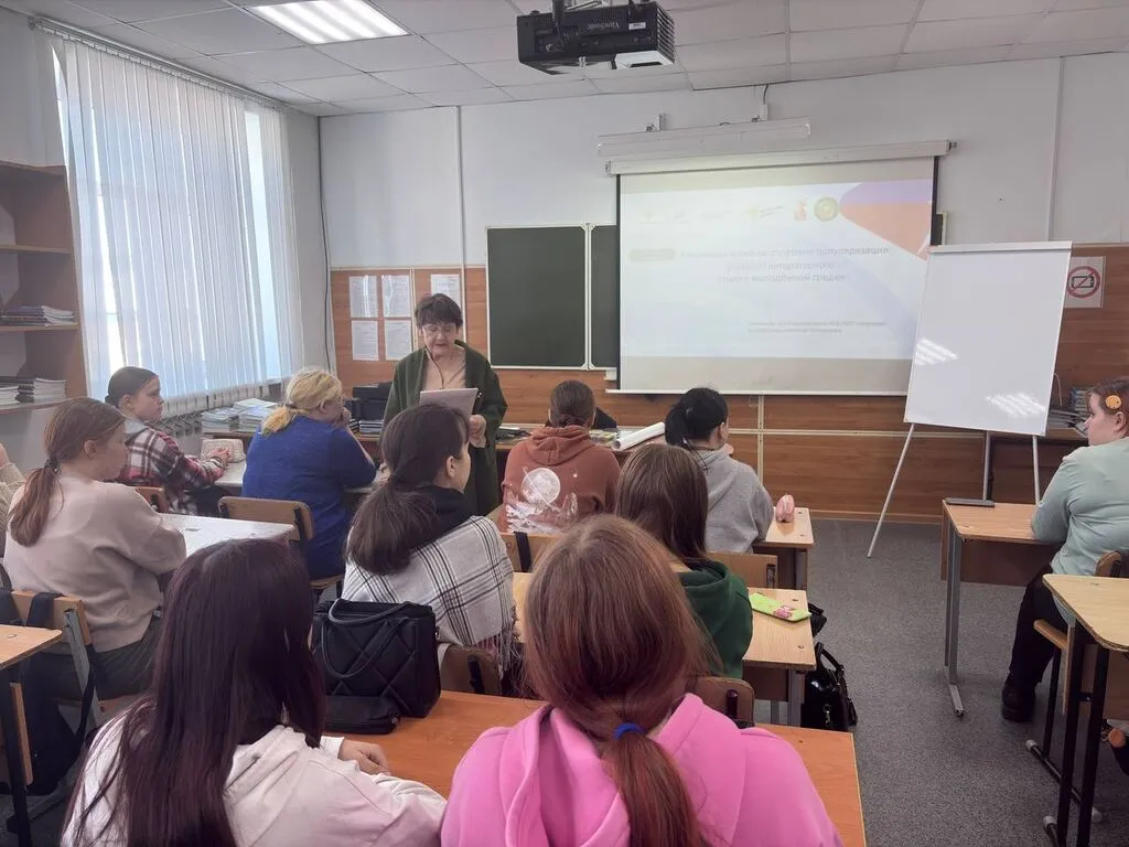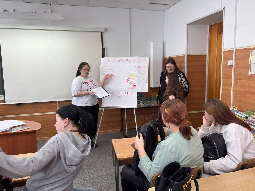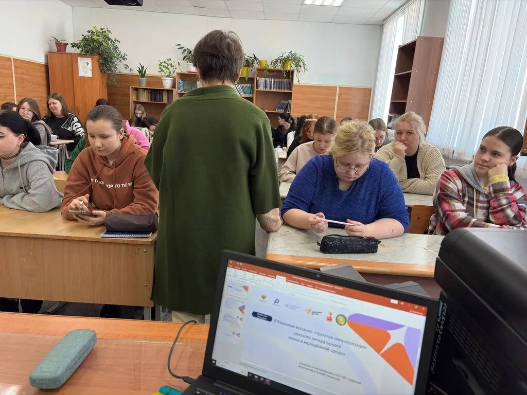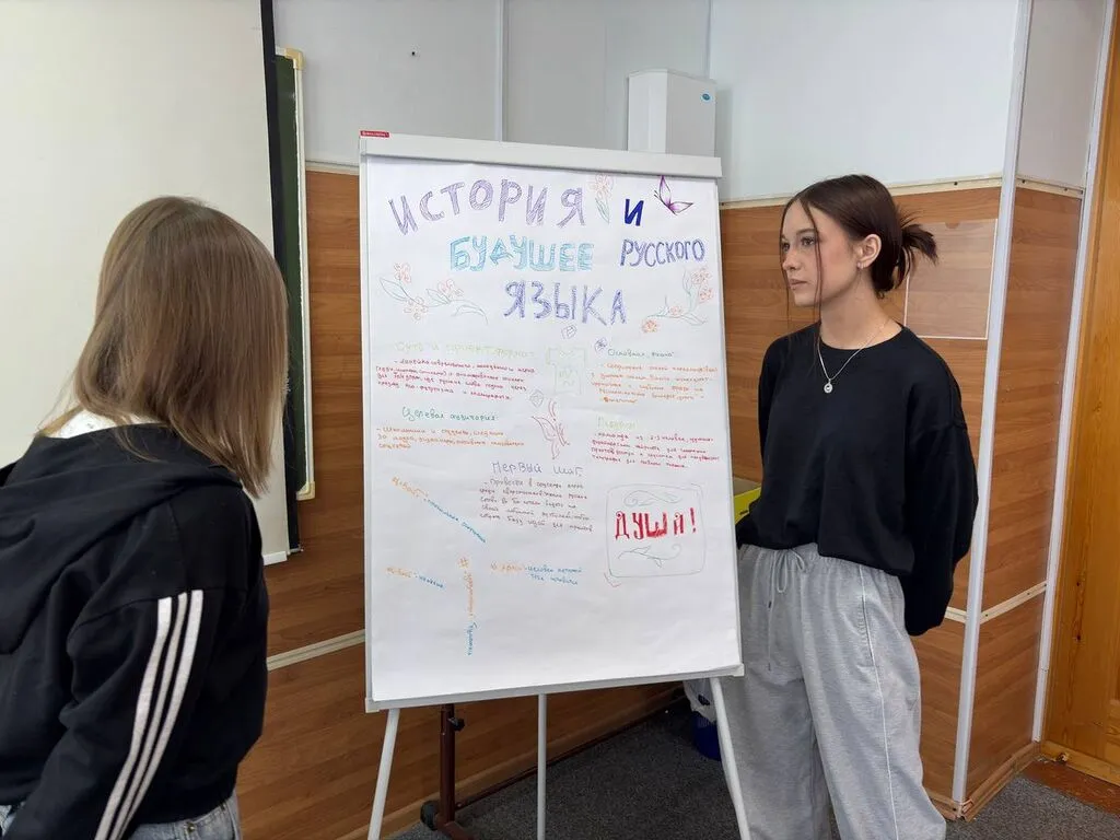 📚 Урок состоял из двух частей. В первой, подготовительной, преподаватель русского языка и литературы Валентина Иннокентьевна Погарцева поделилась интересными фактами о русском языке, подчеркнув его живость, богатство и выразительность. Мы обсудили, как современный язык меняется и как важно сделать его модным, точным и удобным для общения среди молодежи.