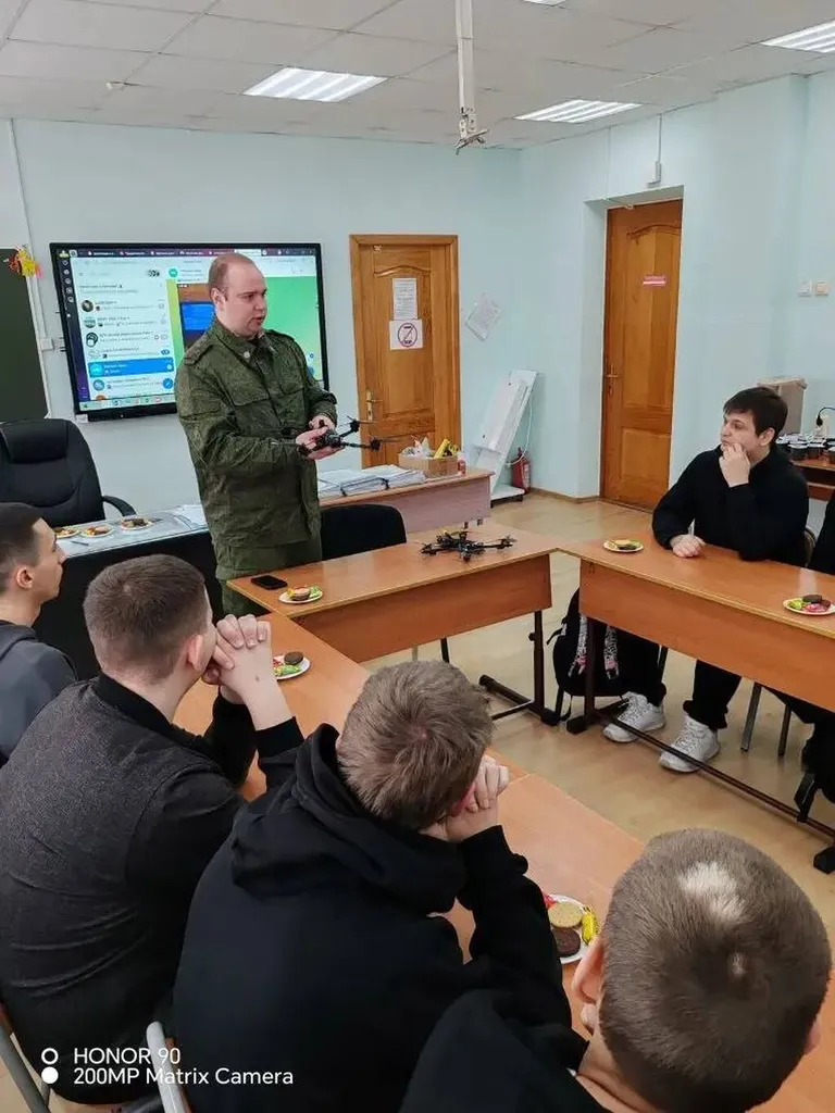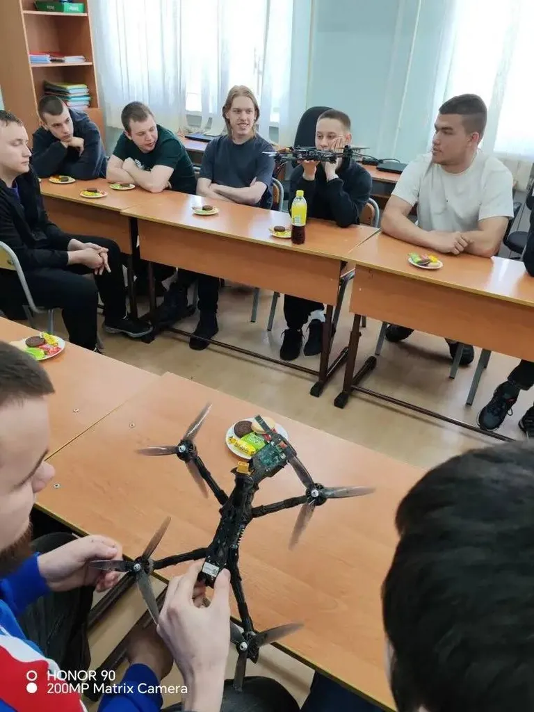 Максим рассказал о своем пути: от студенческой скамьи до службы в рядах ВС РФ. Но самым захватывающим моментом стало знакомство с современными технологиями. Максим подробно рассказал о роли БПЛА в современном бою и продемонстрировал настоящие дроны, объяснив принципы их работы.