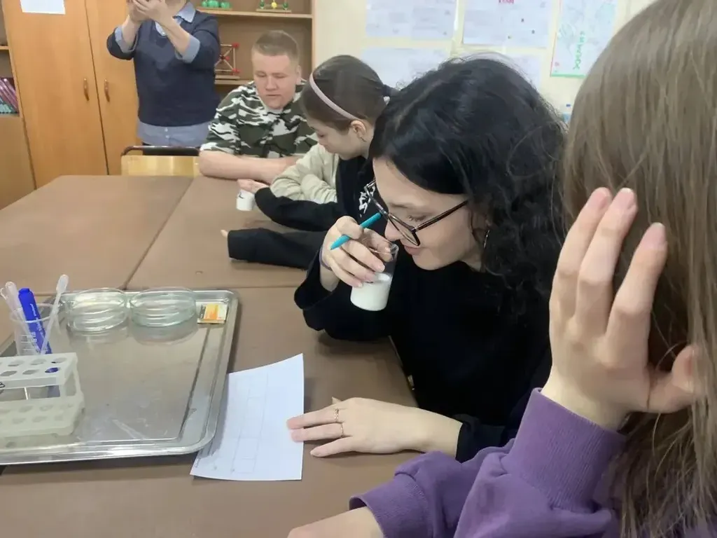 В рамках насыщенной программы ребята: 🔍 Вместе со студентами-волонтёрами ХАТ смогли поближе рассмотреть техникум, посетить современные мастерские и учебные лаборатории, а также познакомиться со стендом «Выпускники ХАТ — участники СВО». Специальность «Техническое обслуживание и ремонт автотранспортных средств»: Под руководством инструктора по вождению школьники пробовали управлять автомобилем на автодроме техникума, а вместе с мастером производственного обучения проводили профессиональную диагностику машин. Специальность «Эксплуатация и ремонт сельскохозяйственной техники и оборудования»: Ребята сели за руль трактора под чутким контролем инструктора. Также под руководством мастера школьники работали с агронавигатором, тренажёром-симулятором «ДИПОЛЬ», гидростендом и сыграли в мини-игру «Найди отличие». Специальность «Технология продуктов питания животного происхождения»: На мастер-классе «Независимая экспертиза молока» под руководством мастера ребята провели контроль качества готовой продукции. Исследуя образцы пастеризованного молока от разных производителей, школьники проверили органолептические признаки, определили уровень кислотности (рН), а также проверили наличие примесей и крахмала в образцах. Профессия «Повар, кондитер»: Здесь школьники творили и пробовали свои силы в кулинарии: готовили сосиски в тесте и воздушные меренги. После выпечки ребята с удовольствием дегустировали свои «вкусняшки». Специальность «Поварское и кондитерское дело»: В блоке «Молекулярная кухня» гости увидели, как создаются чипсы из риса. А в рамках игры «Самая замечательная профессия» ребята разгадывали ребусы, узнавали знаменитых шеф-поваров и в «Сундуке ощущений» на ощупь определяли разные виды круп. Специальность «Сварочное производство»: Будущие мастера узнали о тонкостях профессии и, надев специальную защитную одежду, под контролем наставника попробовали выполнить настоящую сварку!