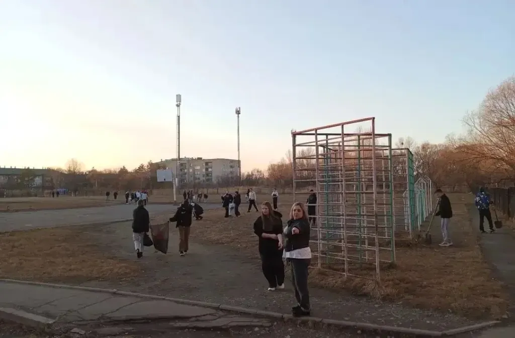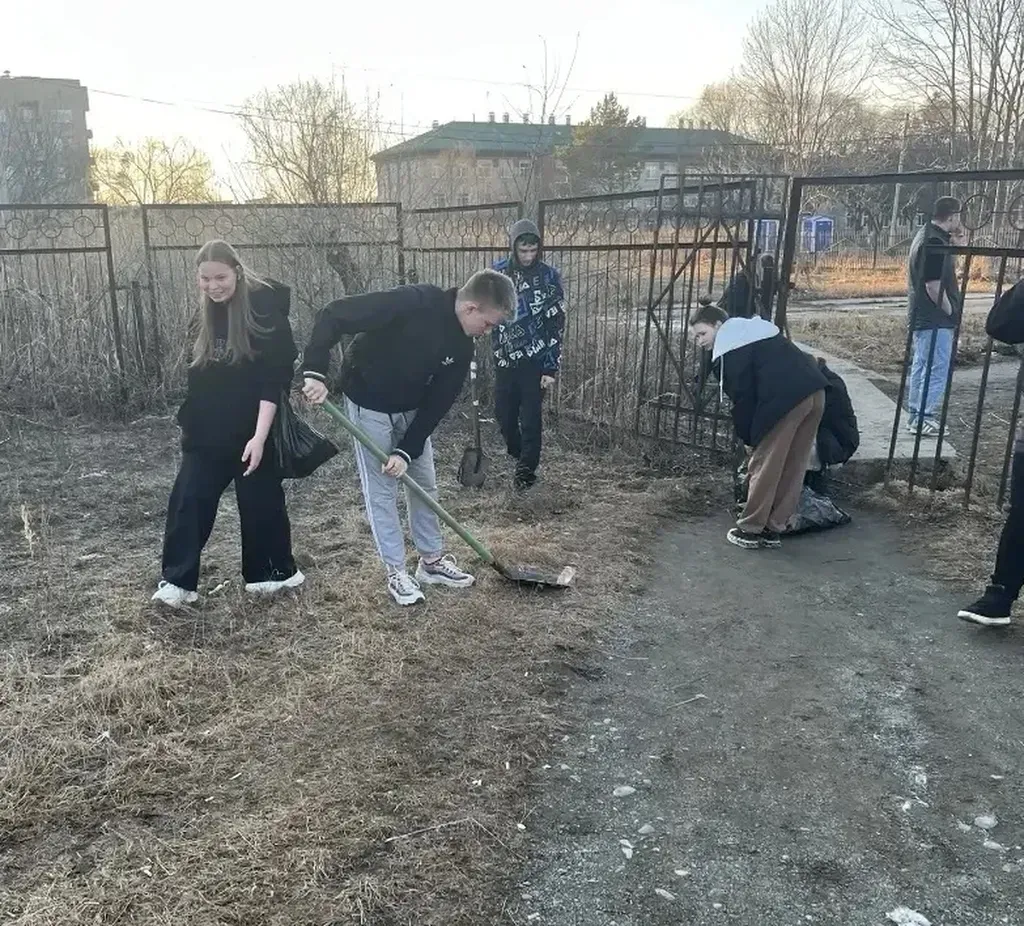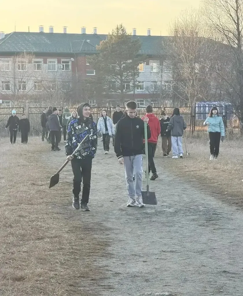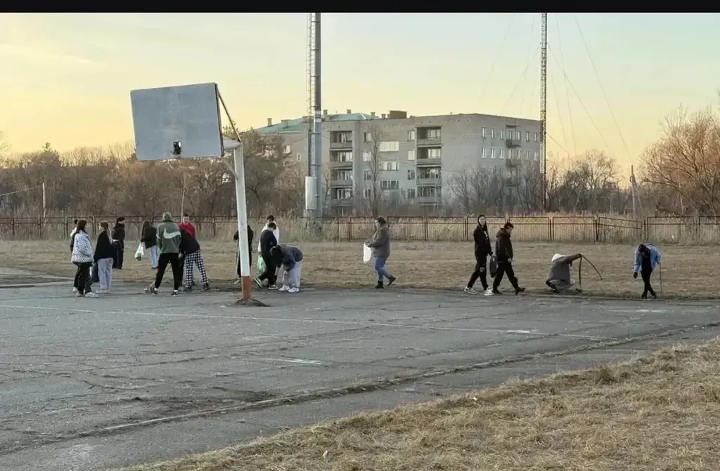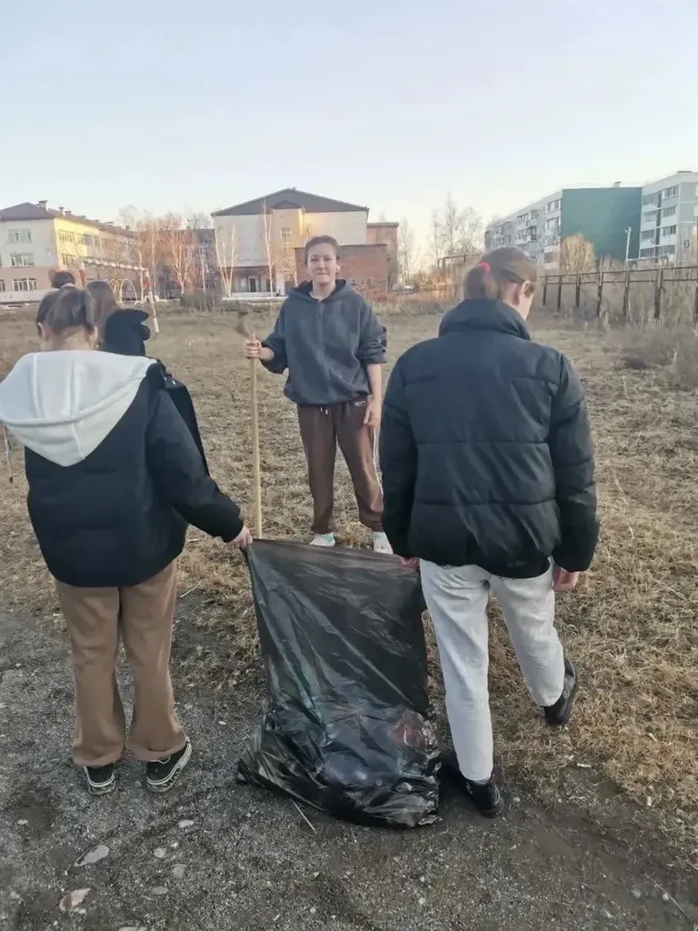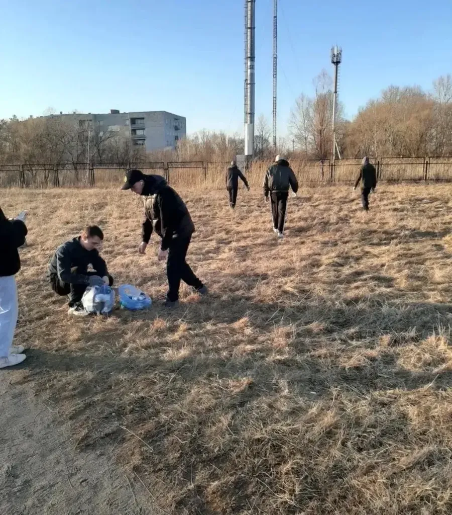 А сейчас мы присоединились к весеннему субботнику по санитарной очистке и благоустройству территории. Ребята вышли на уборку стадиона школы №3 п.Хор. Активное участие приняли студенты-волонтеры, проживающие в общежитиях №1 и №2, совместно с воспитателями. Спасибо всем, кто внес вклад в создание чистоты!