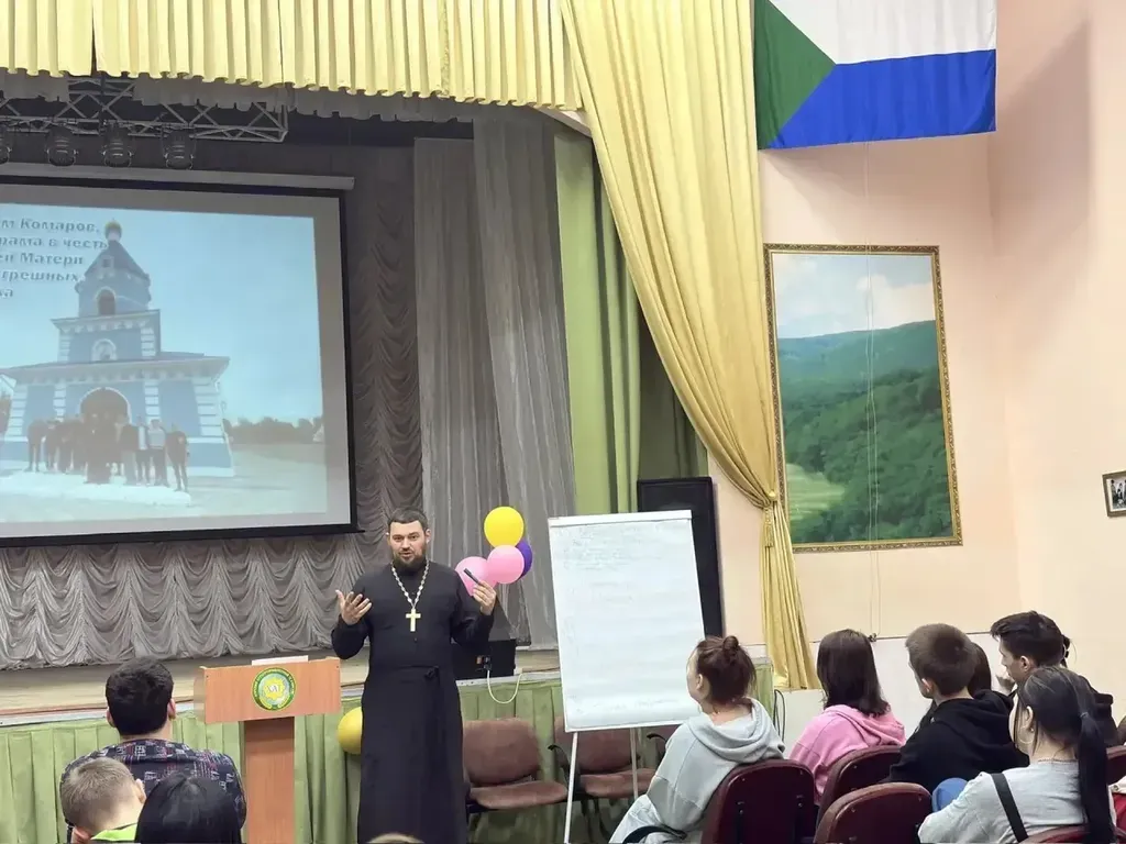2 апреля в Хорском агропромышленном техникуме состоялась традиционная и очень теплая встреча студентов с настоятелем Храма иконы Божией Матери «Споручница грешных» отцом Максимом.