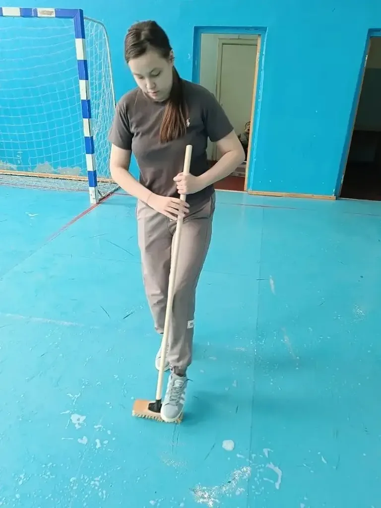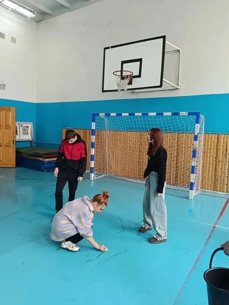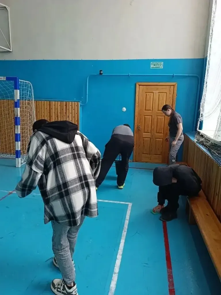 Общими усилиями ребята и педагоги отмыли зал до блеска, чтобы заниматься спортом было приятно и безопасно!