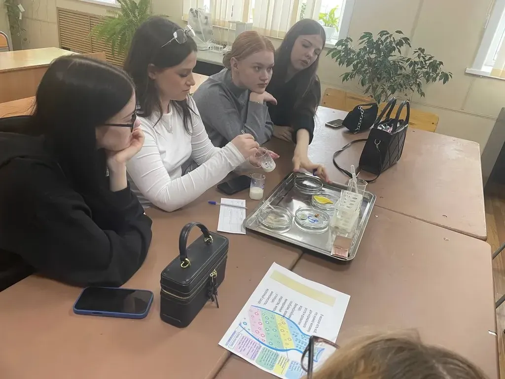 Специальность «Технология продуктов питания животного происхождения»: На мастер-классе «Независимая экспертиза молока» под руководством мастера ребята провели контроль качества готовой продукции. Исследуя образцы пастеризованного молока от разных производителей, школьники проверили органолептические признаки, определили уровень кислотности (рН), а также проверили наличие примесей и крахмала в образцах.