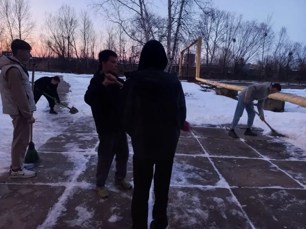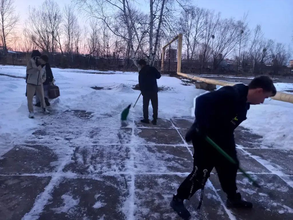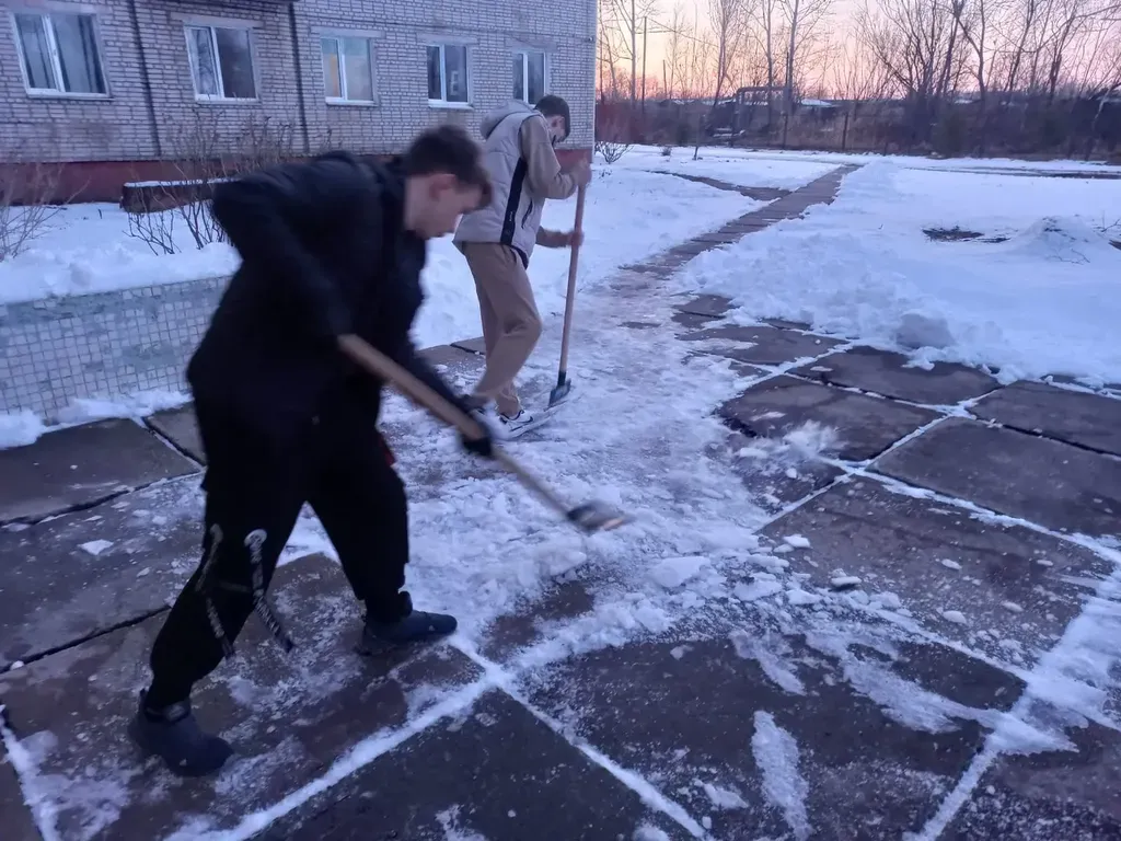 Ребята взяли в руки инструмент и оперативно очистили основные пешеходные дорожки, чтобы передвижение по территории было безопасным и комфортным для всех студентов и педагогов. ✨ Огромное спасибо!