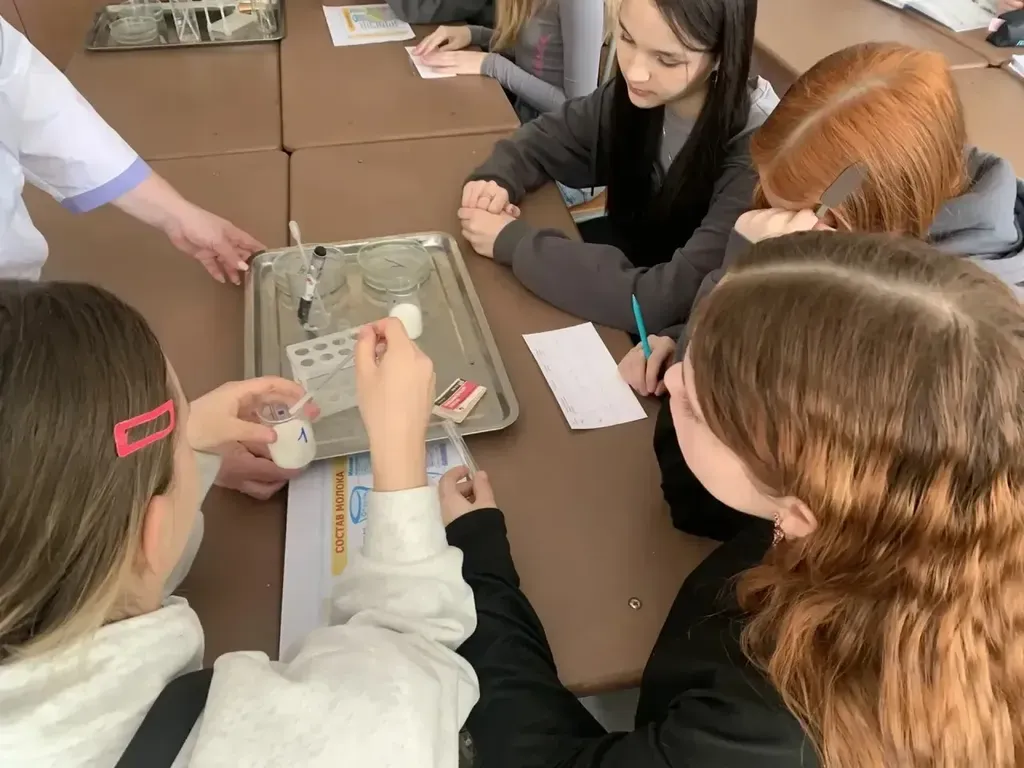 Специальность «Технология продуктов питания животного происхождения»: На мастер-классе «Независимая экспертиза молока» под руководством мастера ребята провели контроль качества готовой продукции. Исследуя образцы пастеризованного молока от разных производителей, школьники проверили органолептические признаки, определили уровень кислотности (рН), а также проверили наличие примесей и крахмала в образцах.