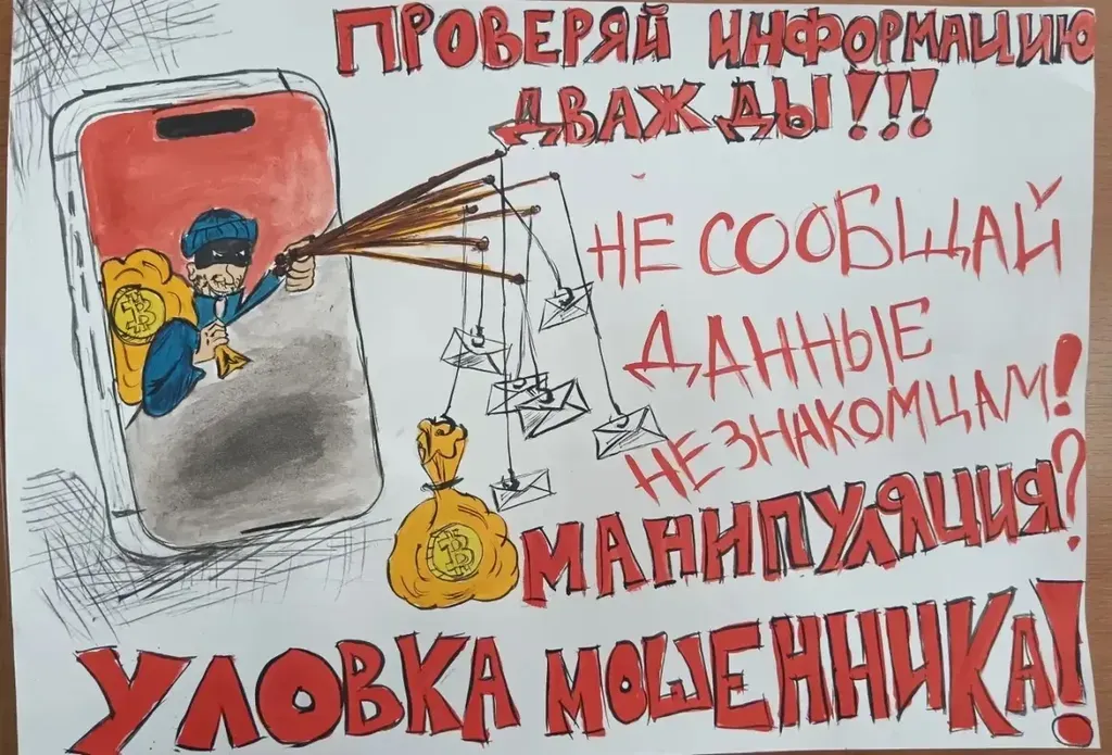 В нём приняла участие и стала победителем в номинации "Искусство предупреждать. Краски, которые защищают" с конкурсной работой "Противодействие телефонному мошенничеству, распознавание и предотвращения мпнипуляций" студентка нашего техникума из группы ТЖ-336 Шмухаметова София. 16.04 победительница конкурса приглашена на торжественное награждение в г. Хабаровск. Руководитель : Гребенник Е. А.