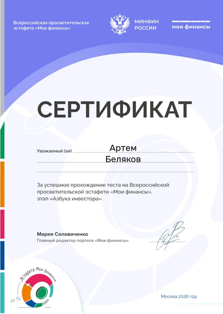 Студенты группы ТОРА-338 успешно завершили тестирование в рамках этапа «Азбука инвестора» просветительской эстафеты «Мои финансы». За свои достижения получили именные сертификаты.