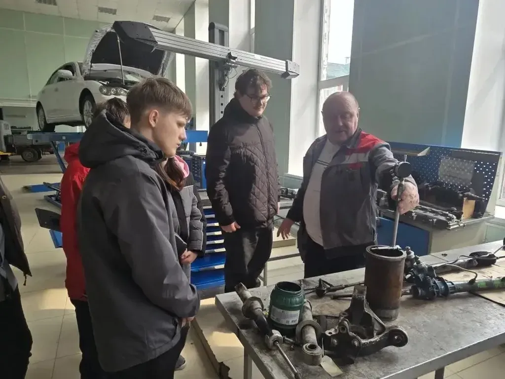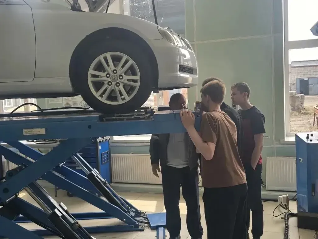 Специальность «Техническое обслуживание в и ремонт автотранспортных средств»: Под руководством инструктора по вождению школьники пробовали управлять автомобилем на автодроме техникума, а вместе с мастером производственного обучения проводили профессиональную диагностику машин.