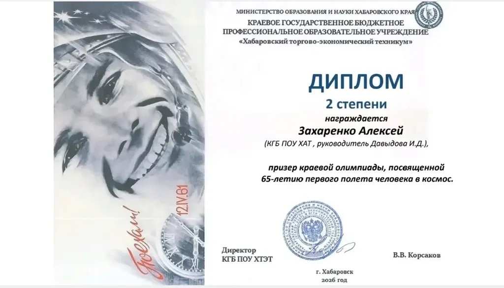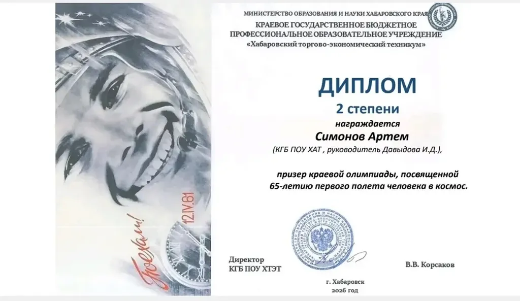 10 апреля студенты группы МСХ-511 Симонов Артём и Захаренко Алексей приняли участие в краевой студенческой викторине, посвящённый 65 летию первого полёта человека в космос.