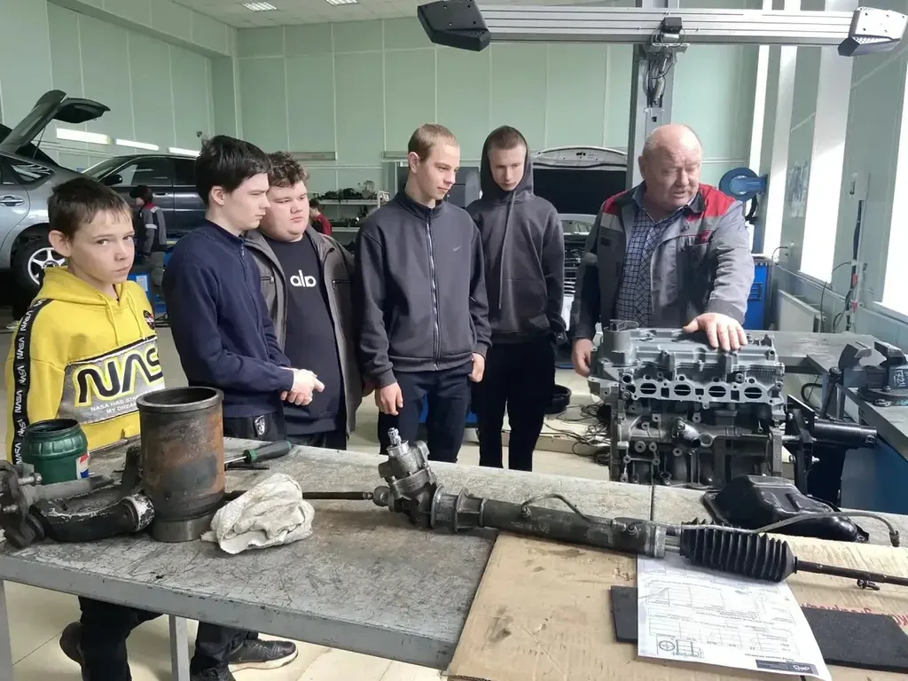 Специальность «Техническое обслуживание в и ремонт автотранспортных средств»: Под руководством инструктора по вождению школьники пробовали управлять автомобилем на автодроме техникума, а вместе с мастером производственного обучения проводили профессиональную диагностику машин.